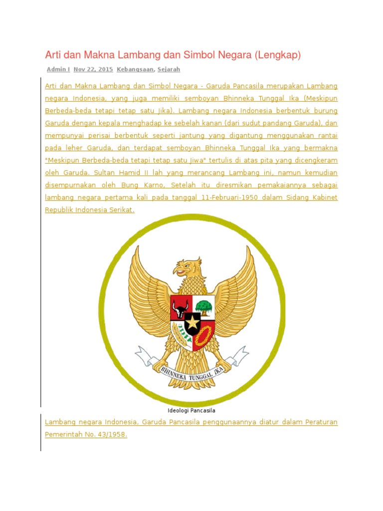 Doc Arti Dan Makna Lambang Dan Simbol Negara Lengkap Rehab