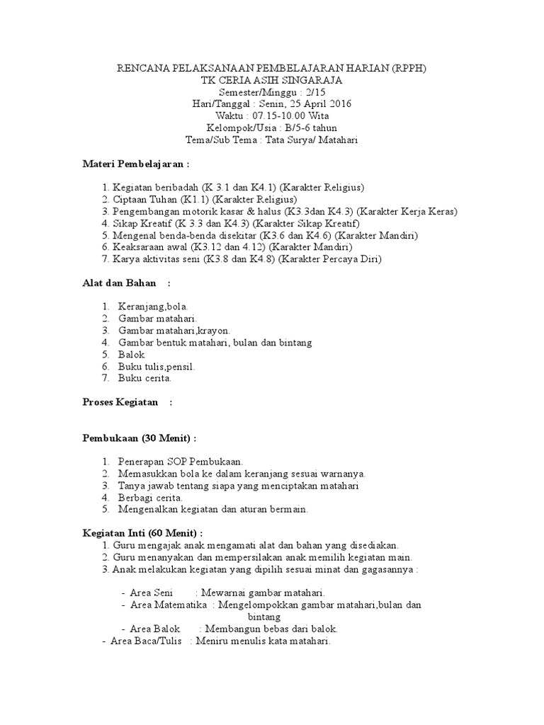 Doc Contoh Rencana Kegiatan Harian Aini Mahmudah Academia Edu