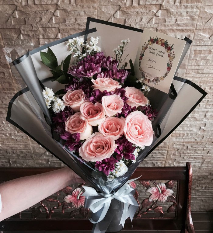 Jual Hand Bouquet Buket Bunga Aster Mawar Kota Tangerang Jw