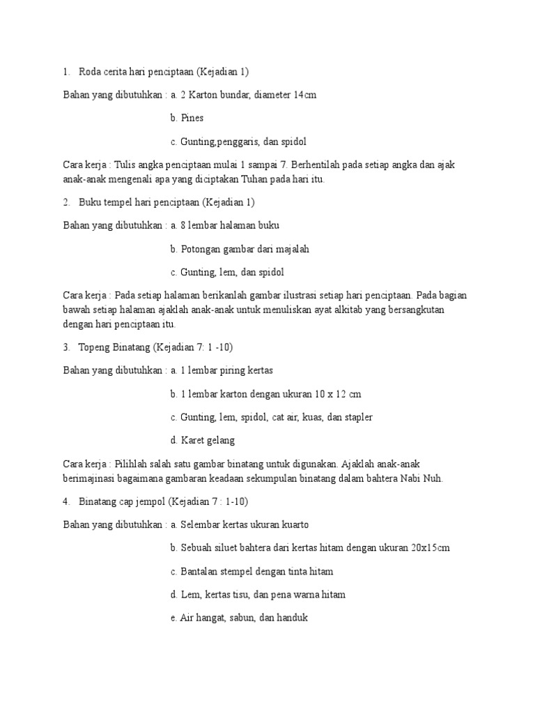 Untuk Anakanak Sekolah Minggu Bahan Sekolah Minggu Urutan Hari