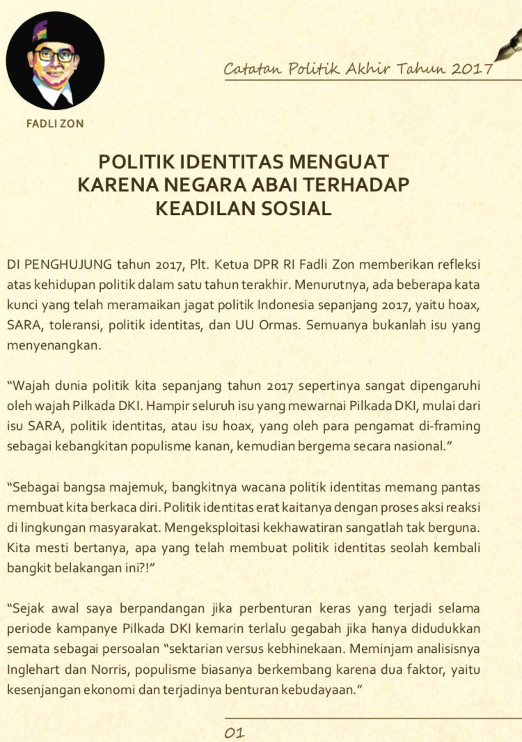 Fadli Zon Ar Twitter Catatan Politik Akhir Tahun 2017 Fadli Zon