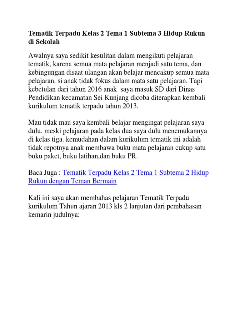Tematik Terpadu Kelas 2 Tema 1 Subtema 3 Hidup Rukun Di Sekolah