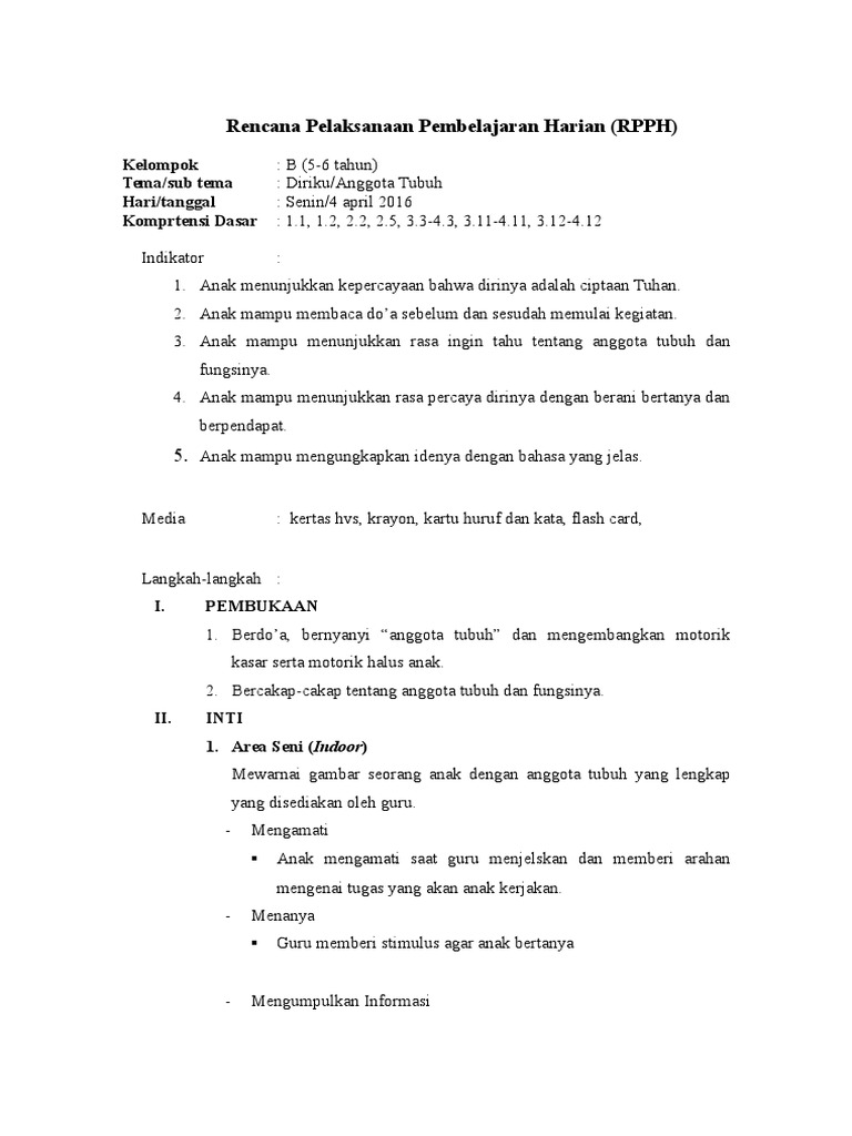 3 Rpph Paud Model Kelompok Kurikulum 2013